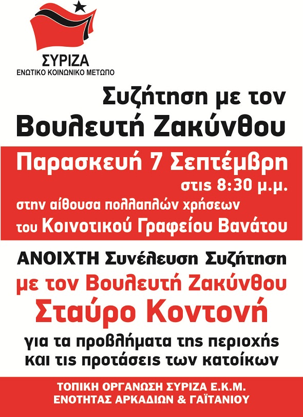 ΣΥΖΗΤΗΣΗ ΜΕ ΤΟΝ ΒΟΥΛΕΥΤΗ ΖΑΚΥΝΘΟΥ ΠΑΡΑΣΚΕΥΗ 7 ΣΕΠΤΕΜΒΡΗ
