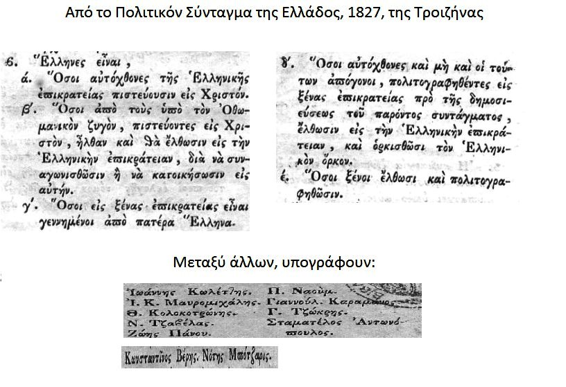 ΑΠΟ ΤΟ ΠΟΛΙΤΙΚΟΝ ΣΥΝΤΑΓΜΑ ΤΗΣ ΕΛΛΑΔΟΣ, 1827, ΤΗΣ ΤΡΟΙΖΗΝΑΣ