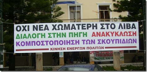 Οι εξελίξεις που έχουν μεσολαβήσει μέχρι σήμερα επιβεβαιώνουν την επικαιρότητα και την αξία των προτάσεων που κατατέθηκαν απο την Κίνηση Ενεργών Πολιτών στο Περιφερειακό Συμβούλιο της 24 Απριλίου 2011, στο οποίο και απορρίφθηκε η πρόταση για δημιουργία ΧΥΤΑ στο Λίβα