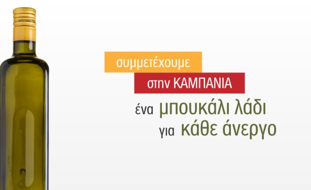 Παράλληλα η «αλληλεγγύη για όλους» παίρνει την πρωτοβουλία οργάνωσης πανελλαδικής καμπάνιας «ένα μπουκάλι λάδι για κάθε άνεργο» και απευθύνει έκκληση στους ελαιοπαραγωγούς και τα λιοτρίβεια να συμμετάσχουν. Σας προτρέπουμε να συμμετέχετε τόσο οι ίδιοι όσο και να εμπλέξετε κι άλλους σε αυτή την προσπάθεια.