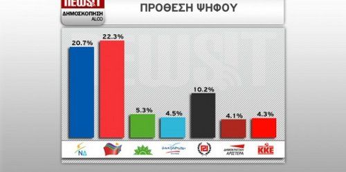 Εντυπωσιακά σε πολιτικό επίπεδο είναι τα αποτελέσματα της δημοσκόπησης της Alco για το Newsit.