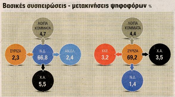 Προς τα δεξιά η ΝΔ έχει τη μεγαλύτερη διαρροή ψηφοφόρων σε αντίθεση με τον ΣΥΡΙΖΑ που χάνει και προς τα αριστερά (ΚΚΕ) αλλά και προς τα άκρα δεξιά (Χρυσή Αυγή)