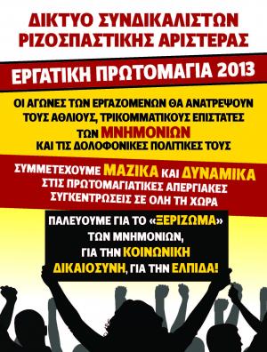 Η Πρωτομαγιά του 2013 μπορεί να αποτελέσει μια νέα αφετηρία, για μια άλλη πορεία στη χώρα, χωρίς μνημόνια και επαίσχυντες δανειακές συμβάσεις.