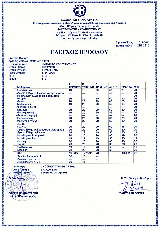 ΥΓ. όχι από ματαιοδοξία αλλά για να στερήσω από κάποιους το γελοίο επιχείρημα πως «απλά θέλω να χάσω μαθήματα» , παραθέτω τους βαθμούς μου…