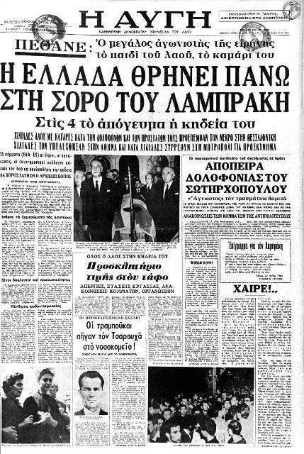 Την επομένη ένα πλήθος 500.000 ανθρώπων συγκεντρώ- θηκε στο Α’ Νεκροταφείο για το «Ύστατο Χαίρε». Γρήγορα, η συγκέντρωση μετατράπηκε σε διαδήλωση καταδίκης της δεξιάς κυβέρνησης του Κωνσταντίνου Καραμανλή και του Παλατιού.