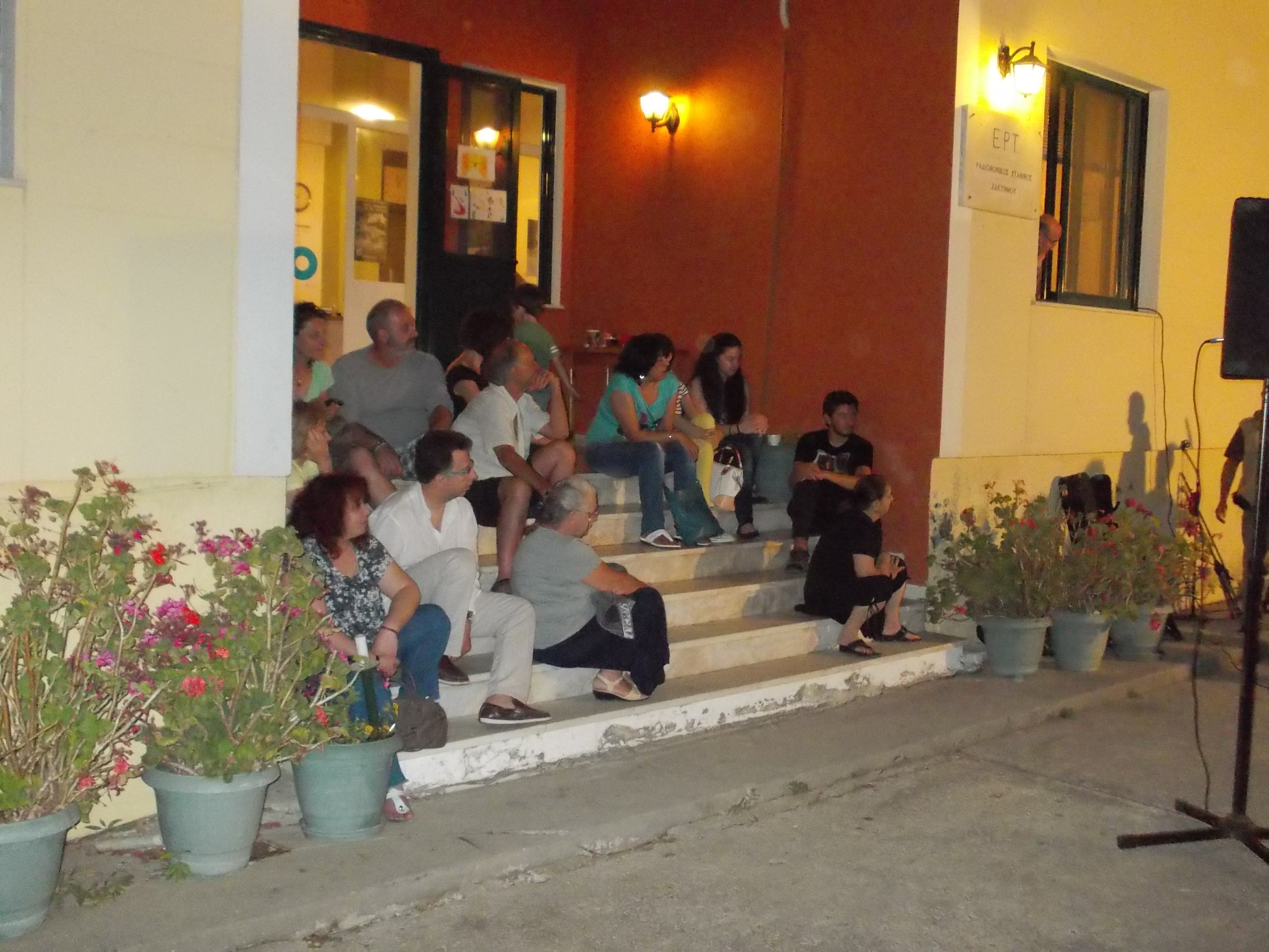 Στην εκδήλωση της Παρασκευής συμμετείχε καλλιτεχνικό σχήμα απο το μουσικό γυμνάσιο, ο συνθέτης Τιμόθεος Αρβανιτάκης και ο τργουδοποιός Διονύσης Γιατράς