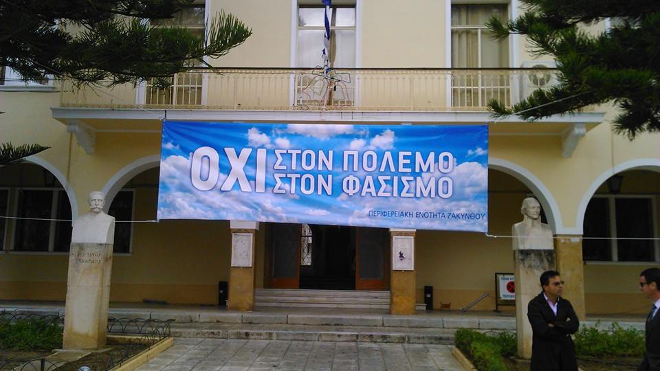 Ζάκυνθος εορτασμός 28ης Οκτωβρίου 2014: ΟΧΙ στον φασισμό – ΟΧΙ στον Πόλεμο. Το μήνυμα δόθηκε αν και η παρέλαση αναβλήθηκε λόγω βροχής