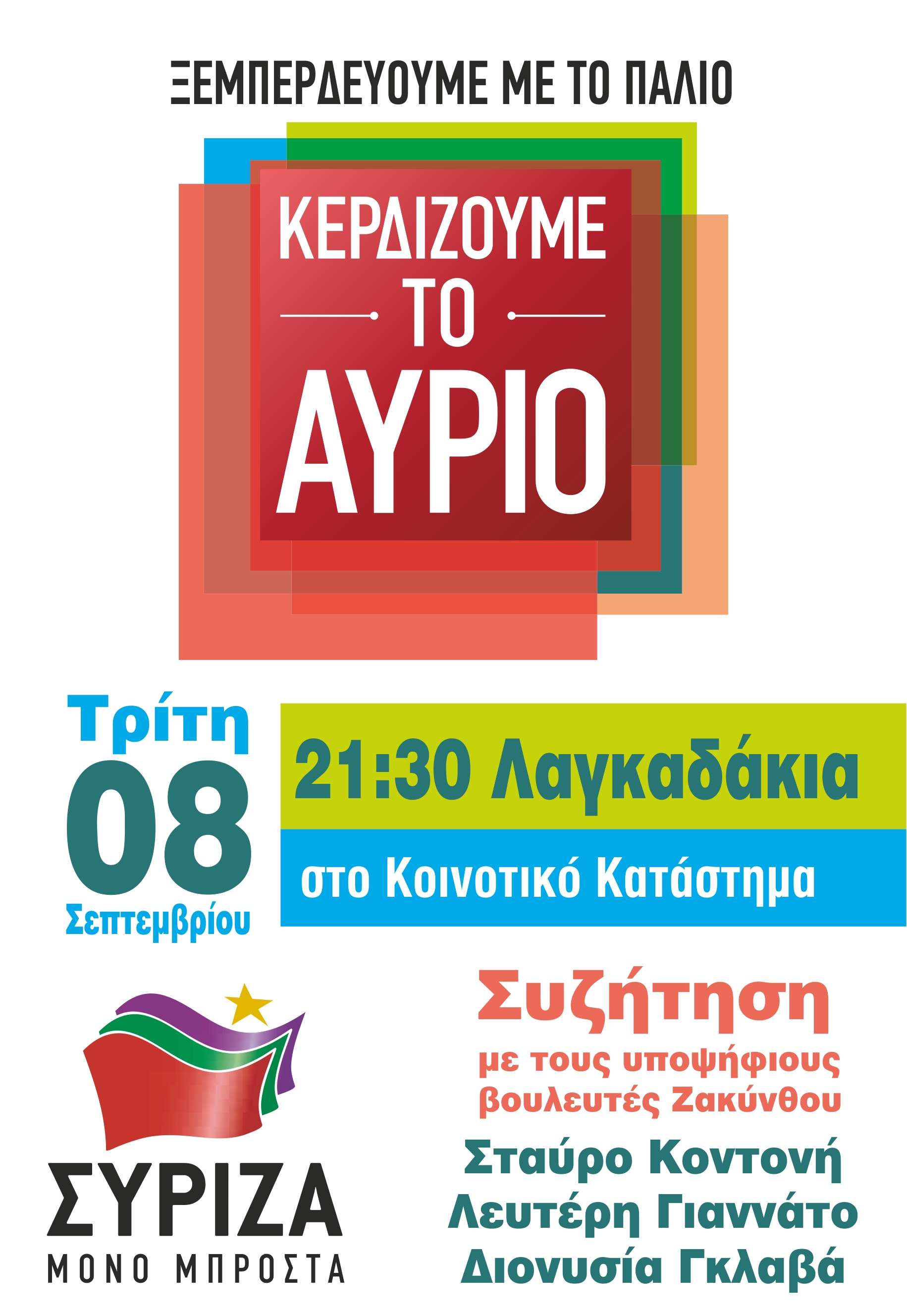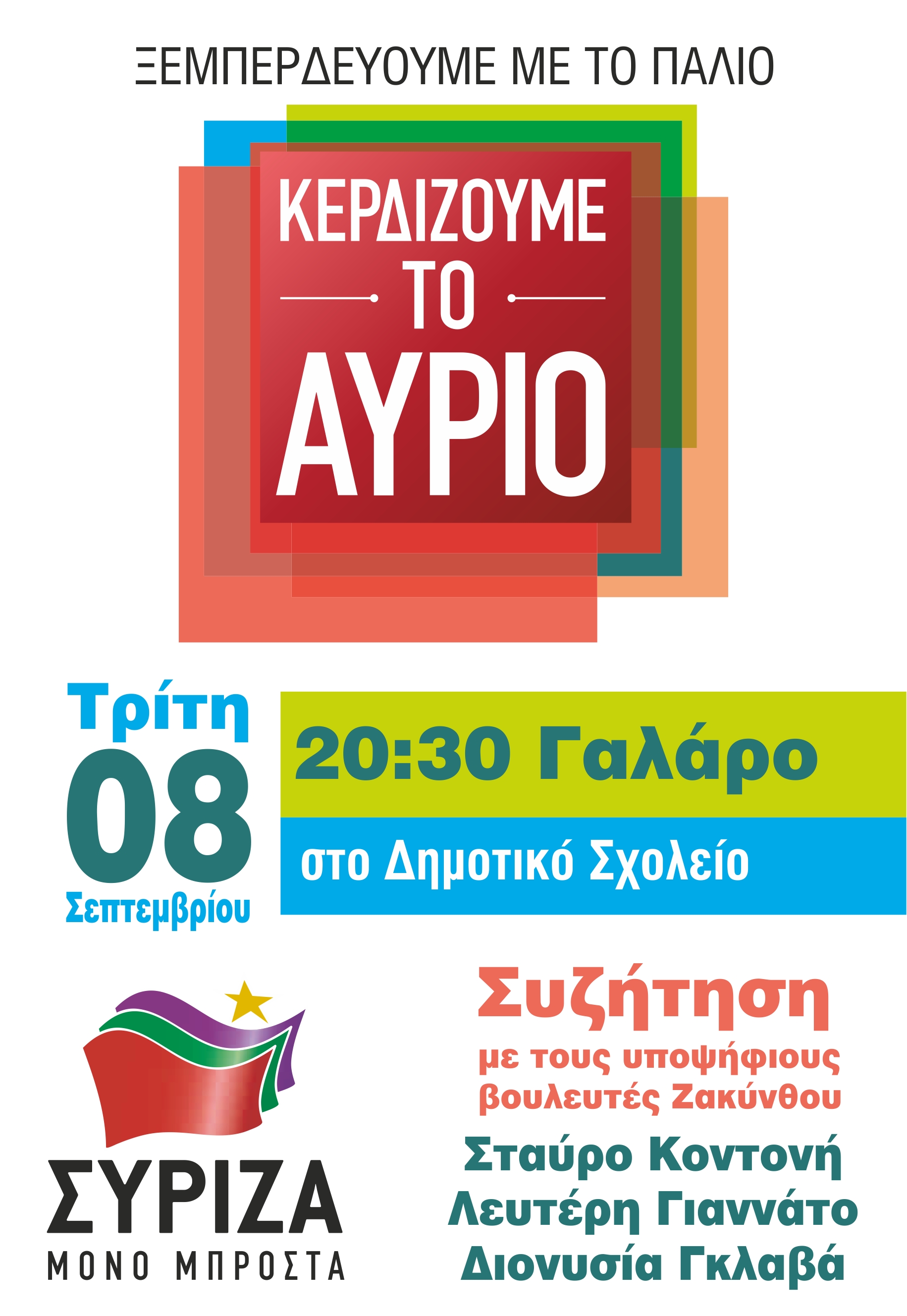 Περιοδεία υποψηφίων ΣΥΡΙΖΑ Τρίτη 8/9 το βράδυ στο Γαλάρο ( 8.30 μμ ) και στα Λαγκαδάκια ( 9.30 μμ