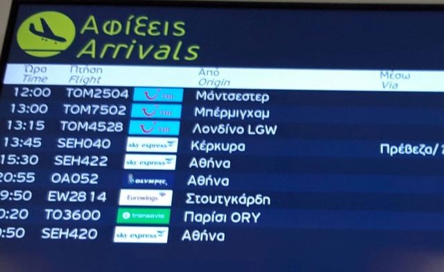 Φωτογραφία από τον πίνακα αφίξεων στο αεροδρόμιο Ζακύνθου στις 23/10. Και ενώ το Μάντσεστερ βρίσκεται κάτω από «αυστηρή σύσταση αποφυγής μετακινήσεων…» έχει ένα παράθυρο διαφυγής προς τον έξω κόσμο: Το …ΑΕΡΟΔΡΟΜΙΟ ΖΑΚΥΝΘΟΥ.