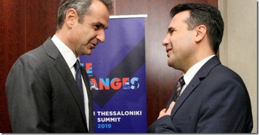 Ο κ. Μητσοτάκης διαβεβαίωνε ότι «δεν θα καλωσορίσει ποτέ Μακεδόνα πρωθυπουργό», ότι «όσο τα εθνικά συμφέροντα της Ελλάδος δεν διασφαλίζονται και αν δεν επιλυθούν τα σχετικά με τα μακεδονικά προϊόντα προβλήματα θα ασκήσει βέτο στην ένταξη των Σκοπίων στην ΕΕ».