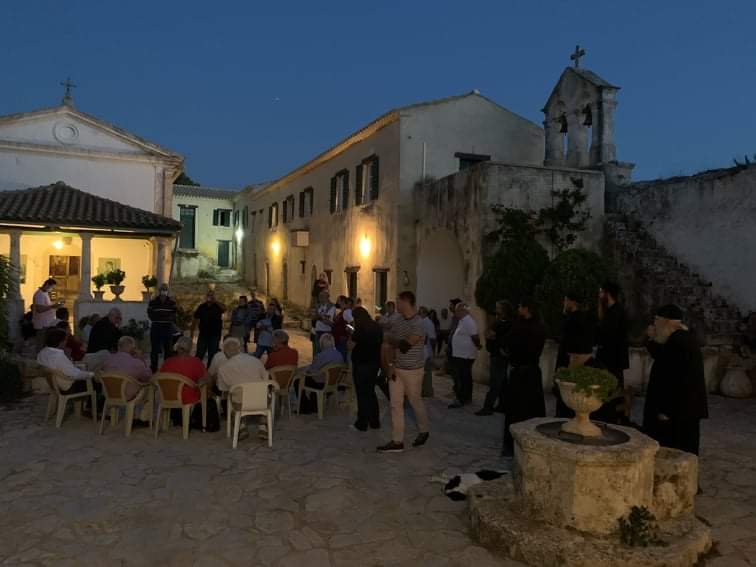 Στη συνέχεια, επισκέφθηκαν την Ιερά Μονή Αγίου Γεωργίου Κρημνών, όπου θαύμασαν το πρότυπο εργαστήριο κατασκευής ψηφιδωτών, και συμμετείχαν σε συζήτηση με τους κατοίκους των Ορεινών περιοχών, οι οποίοι επεσήμαναν πολλές φορές την αδικία που υφίστανται, περιγράφοντας τον αγώνα που δίνουν για την προστασίας της περιουσίας τους, αλλά και της Μονής, κατά επιτηδείων που προσπαθούν με κάθε μέσο να την οικειοποιηθούν.