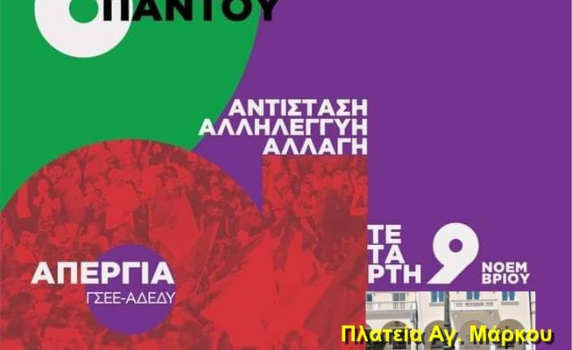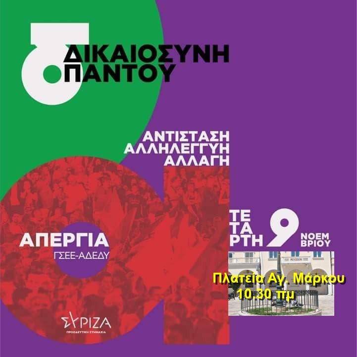 Όλοι στην απεργία στις 9 Νοέμβρη // Δικαιοσύνη παντού – Αντίσταση – Αλληλεγγύη – Αλλαγή