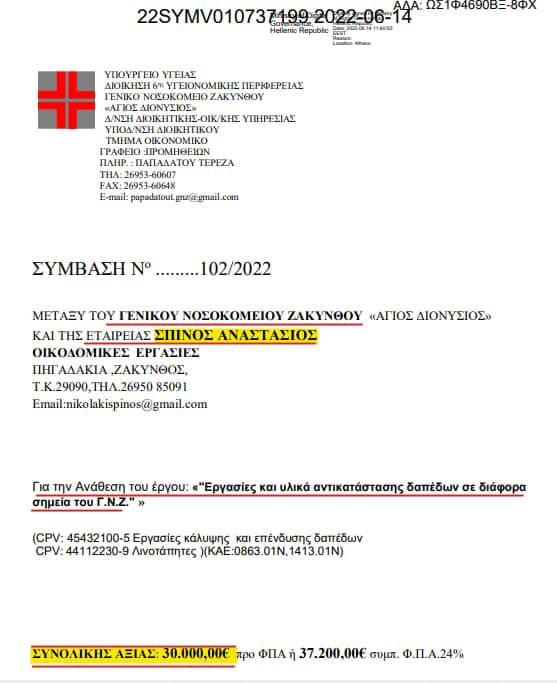 Ο υπάλληλος αυτός διατηρεί ταυτόχρονα ( ! ) και οικοδομική εταιρεία, που φέρει το όνομα του και παρά το γεγονός ότι έχει τύχει μετατάξεως για λόγους….υγείας το 2021, εν τούτοις υλοποιεί σήμερα οικοδομικές εργασίες του τύπου της κατασκευής χώρου στάθμευσης και ανακαίνισης των δαπέδων του νοσοκομείου εισπράττοντας 55.000 ευρώ. Σύμφωνα με τα ΧΕΠ που εκδόθηκαν στο όνομα της εταιρείας του. Αυτό που δεν γνωρίζουμε είναι εάν τηρήθηκαν και οι πολεοδομικές διατάξεις στην κατασκευή του έργου….