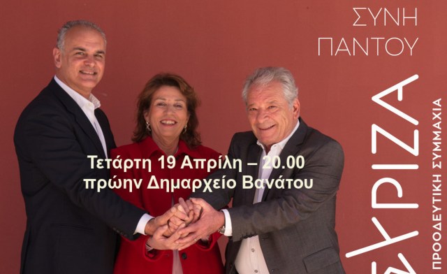 Οι υποψήφιοι του Συριζα-ΠΣ στην ΔΕ Αρκαδίων // Τετάρτη 19 Απρίλη – 20.00 πρώην Δημαρχείο Βανάτου