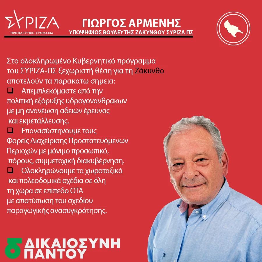 Η προσωπική ιστοσελίδα του υποψήφιου βουλευτή του Συριζα-ΠΣ, Γιώργου Αρμένη