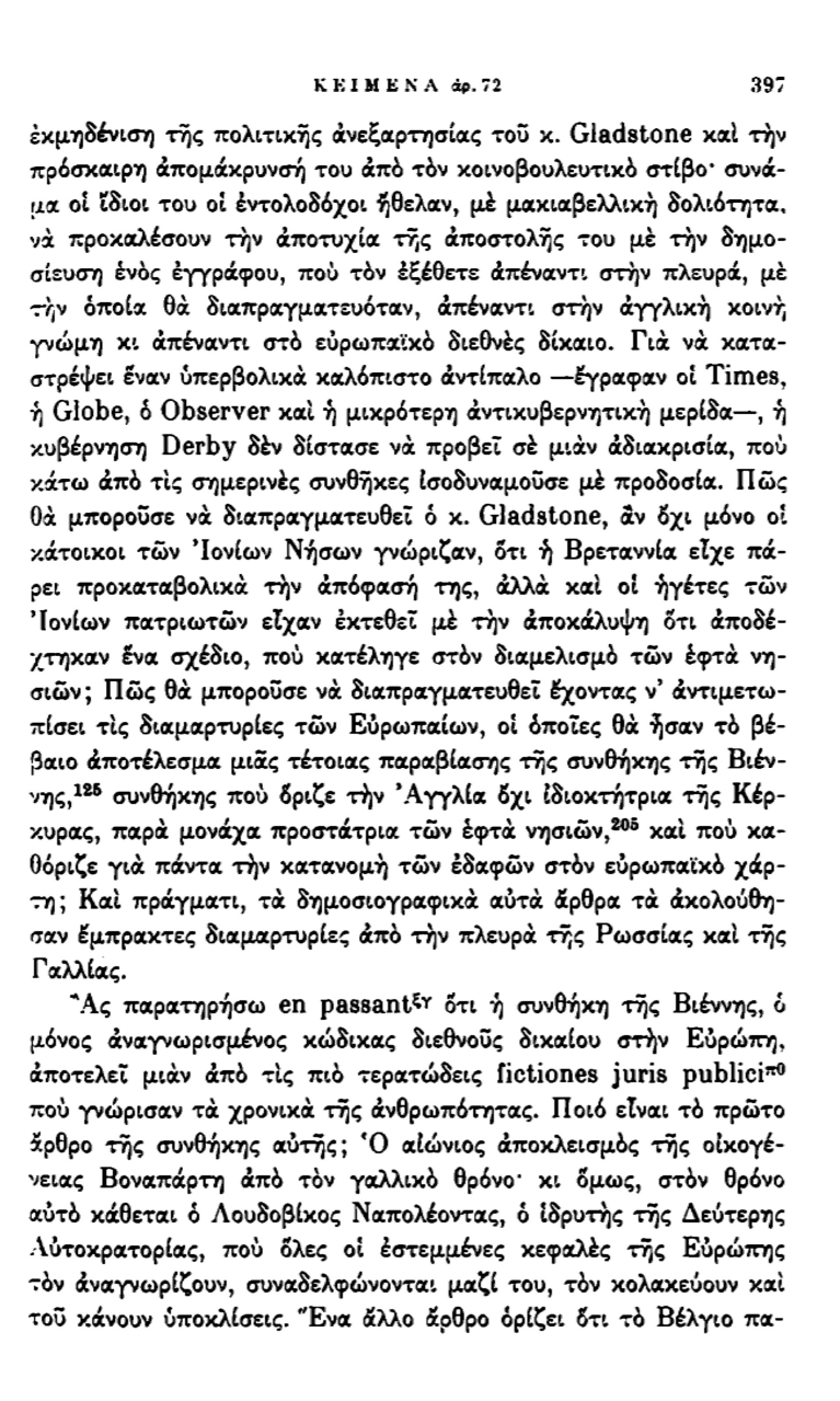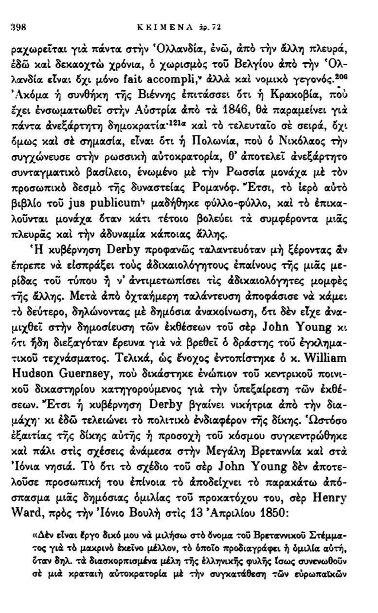 Το εξαιρετικά ενδιαφέρον αρθρο του Καρλ Μαρξ, δημοσιευμένο πριν από 162 χρόνια, συμπεριλαμβάνεται στην μελέτη του Παναγιώτη Κονδύλη με τον τίτλο «Κ. Μαρξ-Φρ. Ενγκελς, Η Ελλάδα, Η Τουρκία και Το Ανατολικό Ζήτημα» στην σειρά Πολιτική και Φιλοσοφική Βιβλιοθήκη αριθμός 9, από τις εκδόσεις Γνώση, που κυκλοφόρησε το 1985