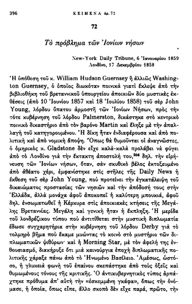 Καρλ Μαρξ : Το πρόβλημα των Ιονίων νήσων // New- York Daily Tribune, 6 Ιανουαρίου 1859 Λονδίνο, 17 Δεκεμβρίου 1958