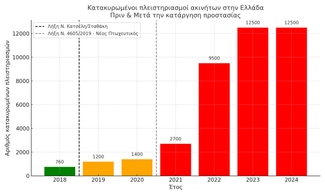 - Σύγκριση πριν/μετά 2019: από σχετικά περιορισμένους πλειστηριασμούς σε μεγάλη κλιμάκωση (ποιοτική και ποσοτική).