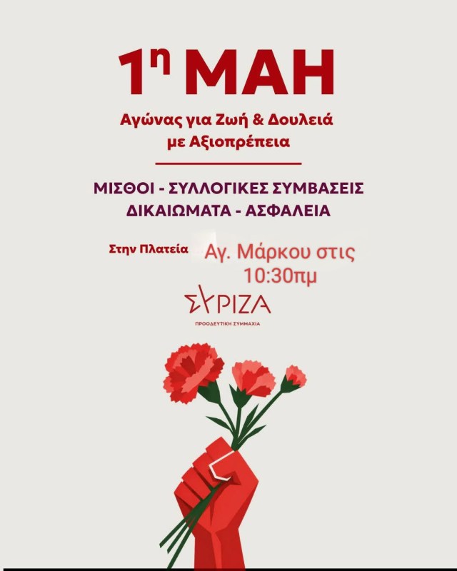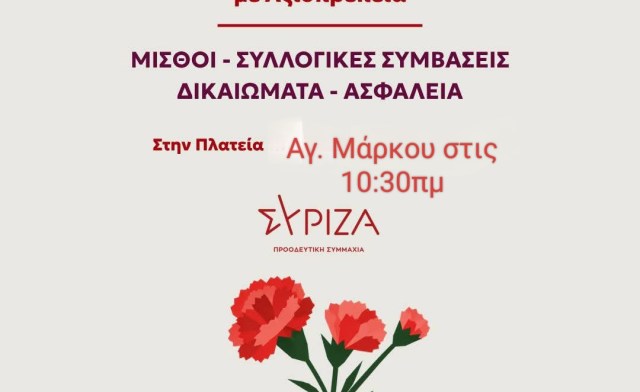 Η Πρωτομαγιά δεν είναι αργία. Είναι απεργία, μνήμη και αγώνας // Κάλεσμα του Συριζα – Προοδευτική Συμμαχία Ζακύνθου στις απεργιακές εκδηλώσεις της Πρωτομαγιάς