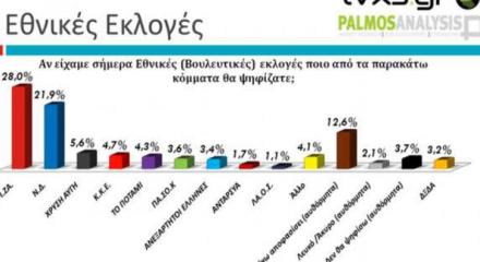 Στο 6% το προβάδισμα ΣΥΡΙΖΑ στη δημοσκόπηση της Palmos Analysis για το Tvxs.gr
