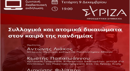 Ζωντανή διαδικτυακή εκδήλωση: Συλλογικά και ατομικά δικαιώματα στον καιρό της πανδημίας // Τετάρτη 9 Δεκεμβρίου στις 19:00