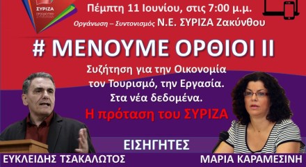 Παρακολουθείστε την διαδικτυακή εκδήλωση της ΝΕ ΣΥΡΙΖΑ Ζακύνθου 12/6 με εισηγητές τον Ε. Τσακαλώτο και την Μ. Καραμεσίνη