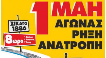 Ζάκυνθος: Σε συγκέντρωση για την 1η Μάη στις 10 πμ έξω απο την περιφέρεια καλεί το Συντονιστικό των Σωματείων Δημόσιου και Ιδιωτικού Τομέα. ΣΙΚΑΓΟ 1Η ΜΑΗ 1886 350.000 εργάτες σε 1.200 εργοστάσια απεργούν και 100.000 εργαζόμενοι διαδηλώνουν σε μια μαχητική πορεία διεκδικώντας 8ωρο και καλύτερες συνθήκες εργασίας. Ο αγώνας της εργατικής τάξης απέναντι στην εκμετάλλευση … Συνέχεια