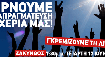 Τετάρτη 17 Ιούνη: Πανελλαδική Κινητοποίηση – Παίρνουμε τη διαπραγμάτευση στα χέρια μας- Ζάκυνθος Εξω απο την Περιφέρεια στις 7.30 μμ