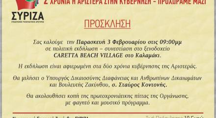 Ν.Ε. ΣΥΡΙΖΑ ΖΑΚΥΝΘΟΥ – Ανοιχτή εκδήλωση για τα 2 χρόνια στην Κυβέρνηση – Ομιλητής ο Στ. Κοντονής
