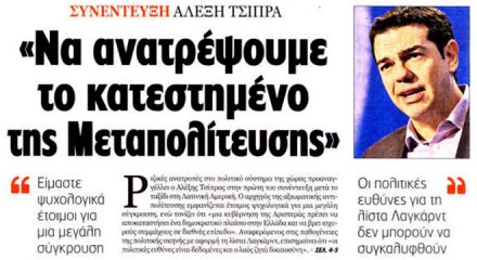 Ημερομηνία: 04/01/2013 Η συνέντευξη του προέδρου της ΚΟ του ΣΥΡΙΖΑ-ΕΚΜ, Αλέξη Τσίπρα στην «Εφημερίδα των Συντακτών». – Σε ποιο επίπεδο της πολιτικής ηγεσίας της χώρας φτάνει το σκάνδαλο της λίστας Λαγκάρντ; Το σκάνδαλο αυτό δεν έχει να κάνει τόσο με τη συζήτηση του τελευταίου διαστήματος, την περιπτωσιολογία δηλαδή, ποιος παρέλαβε τη λίστα, ποιος το CD, … Συνέχεια