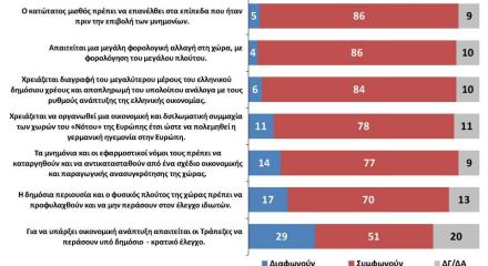 Του Τάσου Παππά Tα ευρήματα των δημοσκοπήσεων είναι συντριπτικά για τα κόμματα που συγκροτούν την κυβέρνηση συνεργασίας. Το 80% των πολιτών πιστεύουν ότι η χώρα βαδίζει σε λάθος κατεύθυνση, πάνω από το 70% δηλώνουν ότι η κυβέρνηση δεν θα τα καταφέρει και γενικώς οι θετικές γνώμες για τις πολιτικές του μνημονίων δεν ξεπερνούν το 10%. … Συνέχεια