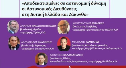 «Επικίνδυνα υποστελεχωμένες οι αστυνομικές υπηρεσίες Αχαΐας, Ηλείας,Αιτωλοακαρνανίας και Ζακύνθου» // Ερώτηση προς τον Υπουργό Προστασίας του Πολίτη κατέθεσε ο Ανδρέας Παναγιωτόπουλος και οι βουλευτές του ΣΥΡΙΖΑ των όμορων νομών