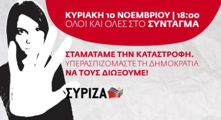 Ο ΣΥΡΙΖΑ καλεί σε συγκέντρωση για την υπεράσπιση της δημοκρατίας την Κυριακή στις 6 το απόγευμα στο Σύνταγμα