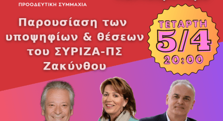 Κυριακή 2 Απρίλη στις 8μμ, στο Πολιτιστικό Κέντρο Μαχαιράδου // Παρουσίαση των υποψηφίων και των θέσεων του Συριζα-ΠΣ στην ΔΕ Αρτεμισίων