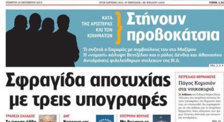 Ημερομηνία: 10/10/2013 10:33 Τι συζητά ο Σαμαράς με συμβούλους του στο Μαξίμου, η «νομική» κάλυψη Βενιζέλου και ο ρόλος Δένδια και Αθανασίου – Αντιδράσεις φιλελεύθερων στελεχών της Ν.Δ. Όπως σημειώσαμε πρόσφατα, ακροδεξιά κέντρα εξουσίας κρατούν «ζεστή» την ανιστόρητη θεωρία των «δύο άκρων» για να ποινικοποιήσουν τον αγώνα των κατοίκων των Σκουριών ενάντια στην εξόρυξη Χρυσού … Συνέχεια